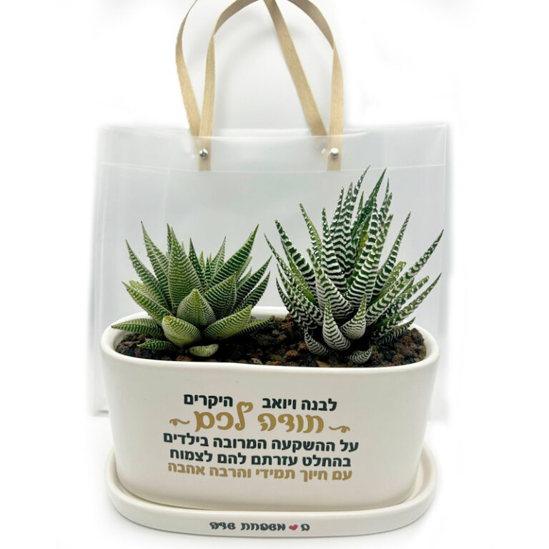 עציץ כפול 22 סוקולנט בכלי קרקמיקה אליפסה עם הקדשה אישית 200 שח